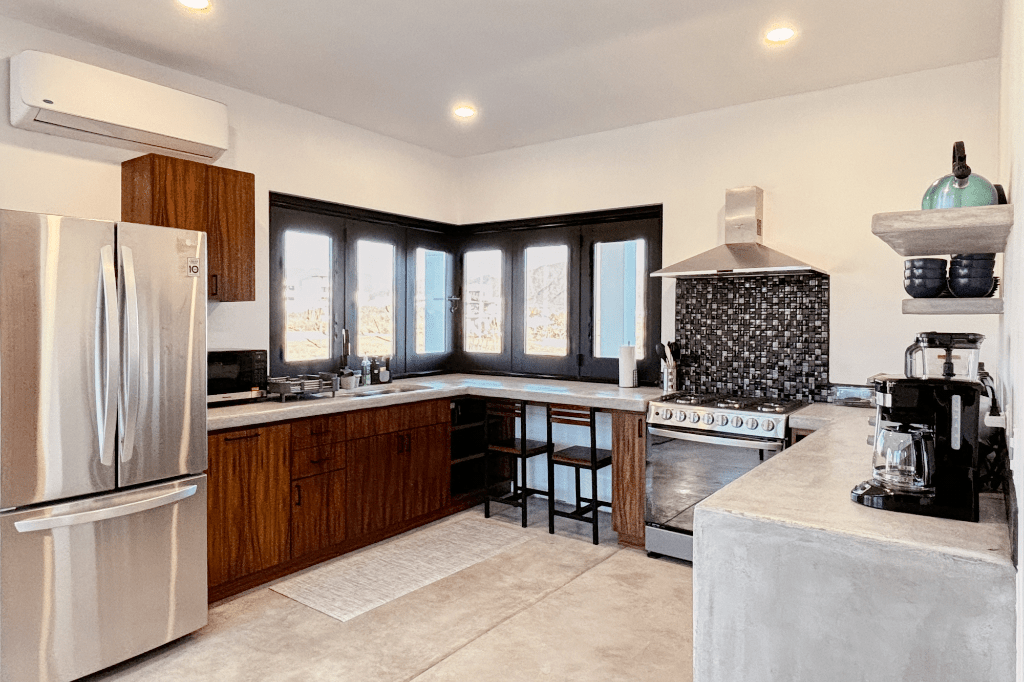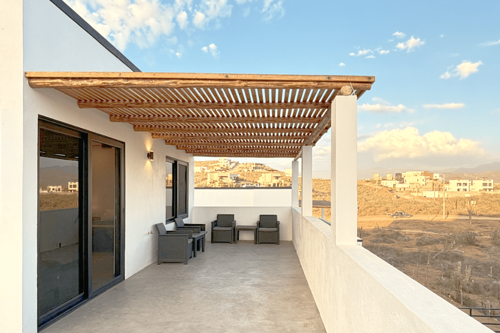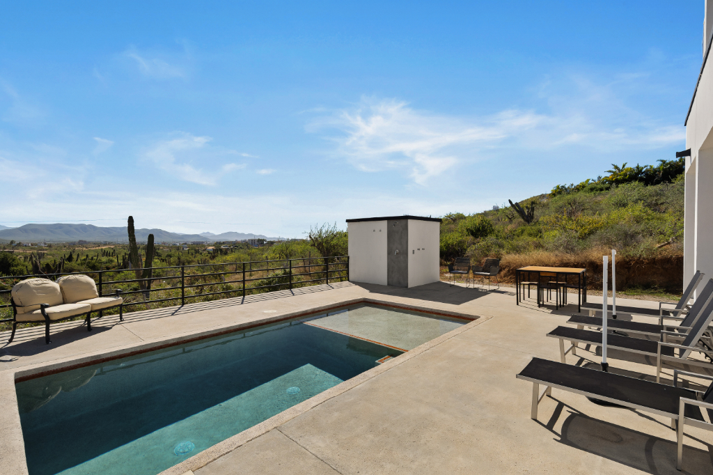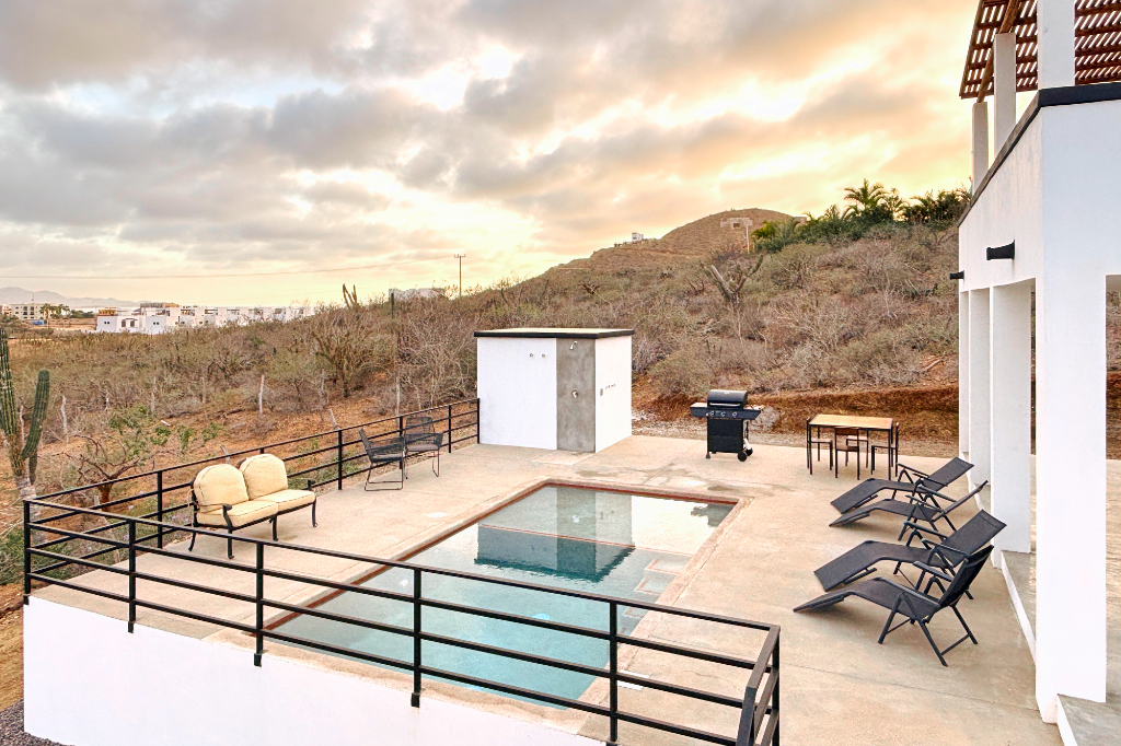 Casa Dar sits on 2,000 square meters (1/2 an acre) of a slightly sloped hill of subtropical desert. Only about half of the land is devleoped, allowing for thriving native plants to surround you. You are also just a 5 minute drive or 15 minute walk from the beach!